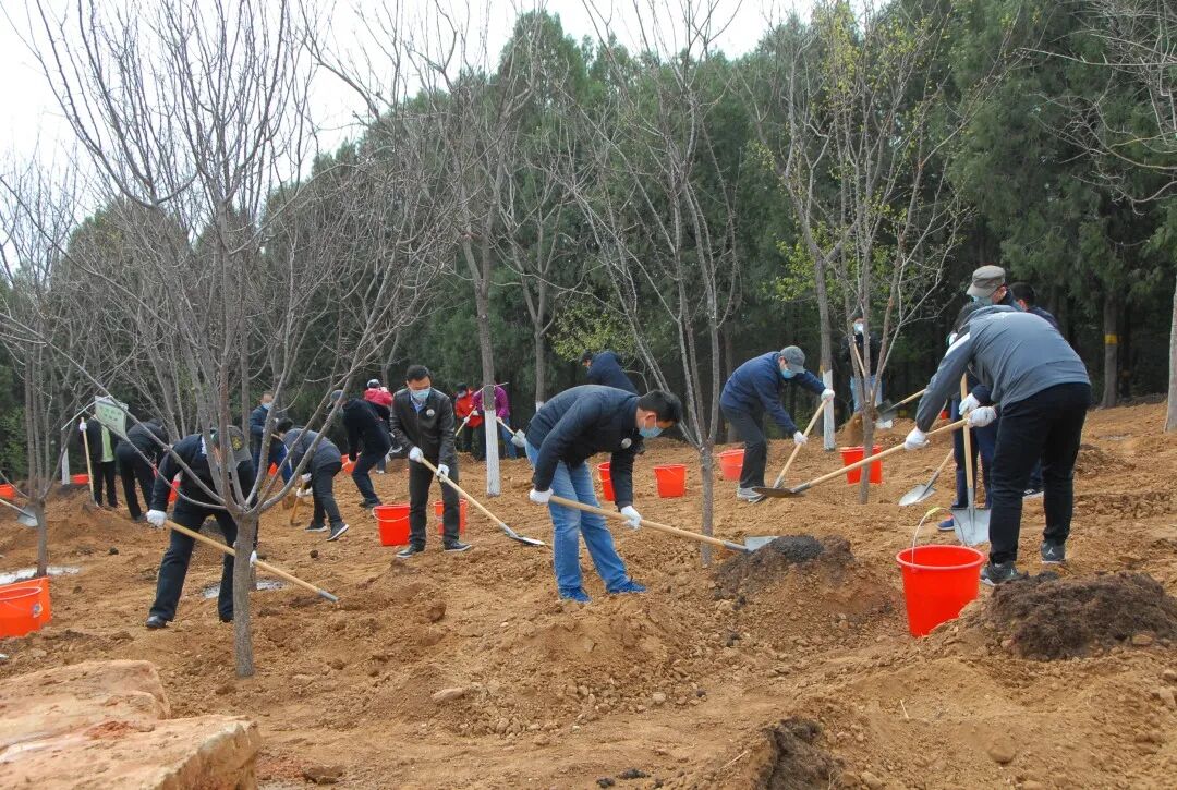植树现场,全国政协领导和机关干部职工挥锹培土、提水浇苗,一派繁忙的劳动景象,相继栽下白皮松、栾树、稠李、山桃、连翘等乔灌木400余株,为北京的春天增添了一片生机。