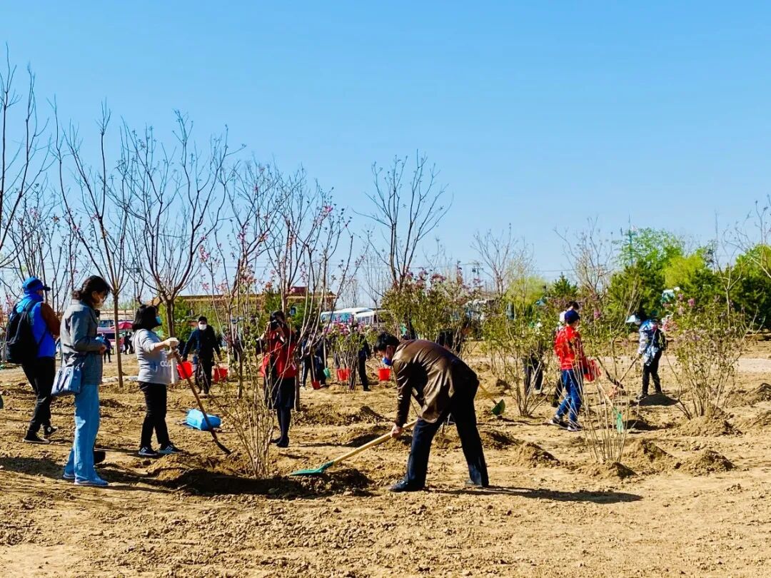 4月12日上午,通州区以“水韵林海 千年绿城”为主题的大型全民义务植树活动在张家湾镇举行。全区各机关事业单位干部职工900余人在这里挥锹铲土,种下油松、海棠、丁香等乔木、花灌木3000余株,以实际行动参与国家森林城市建设。