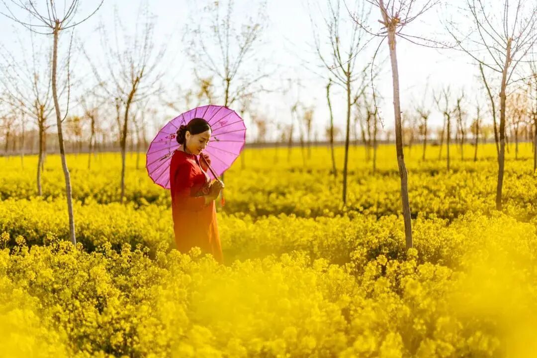 春暖四月,东风时起,雄县鄚州镇杜家营村,二百亩油菜花开成一片金色的海洋,引得人们纷纷前往赏花留影,成为知名打卡地。