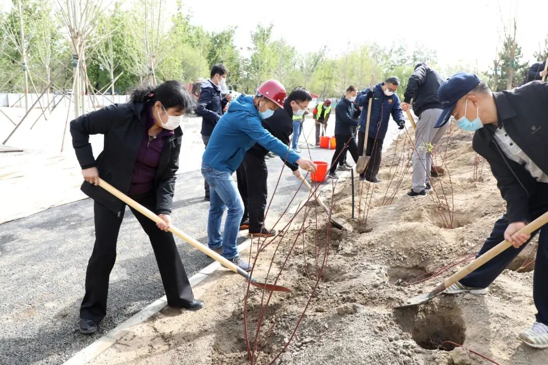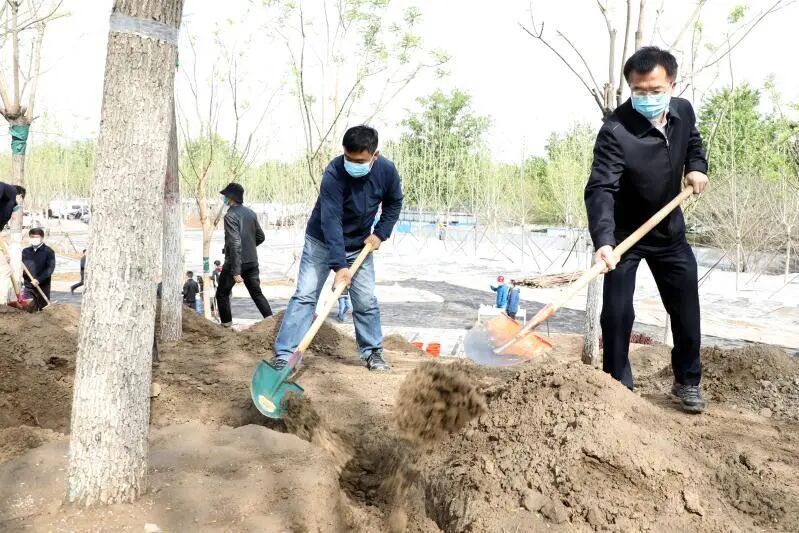 规划建设中的温榆河公园示范区总面积2.04平方公里,此次义务植树活动面积5000平方米。一下车,区领导就拿起铁锹走向植树点,与相关部门负责人一起,三五人一组,挥锹铲土、围堰浇水,栽种下油松、国槐、柳树、海棠、红瑞木等近300株不同种类的树苗。新栽植的树苗迎风挺立,沐浴在艳阳之下。种树间隙,区领导还与相关部门负责人和公园建设者交流、探讨,共同为朝阳区生态文明建设出谋划策。