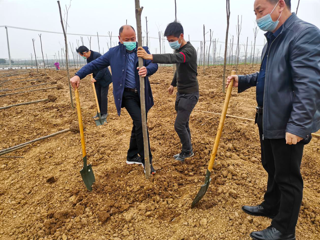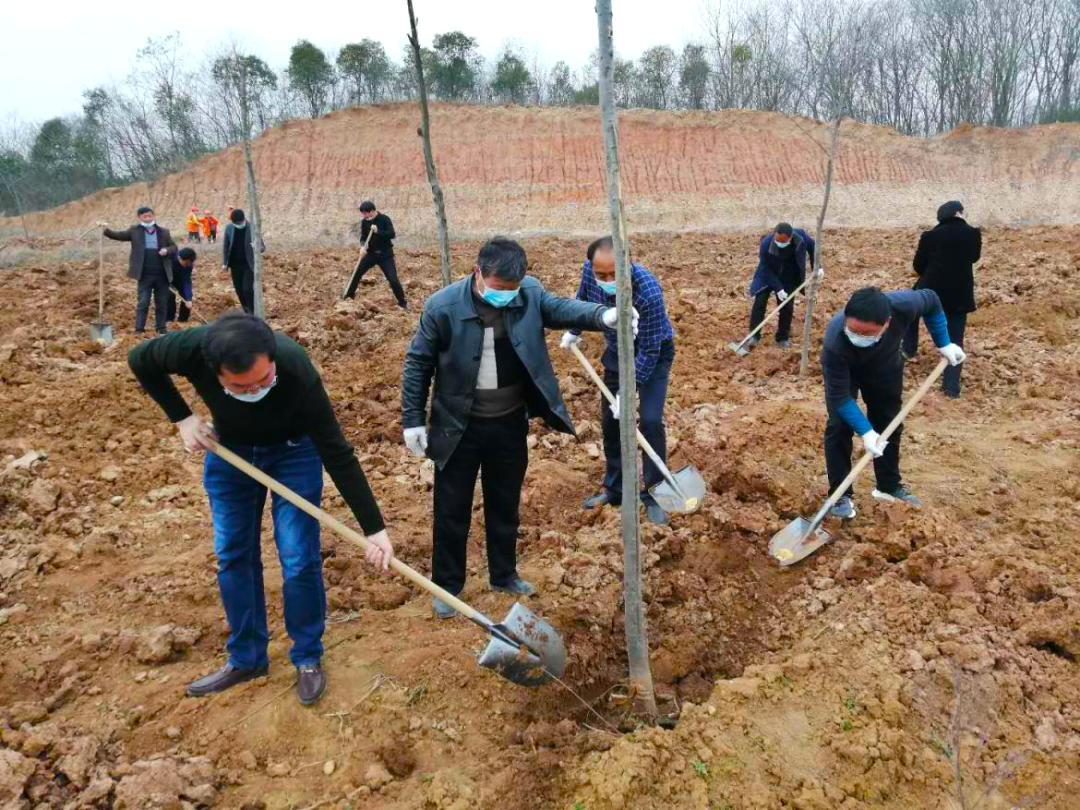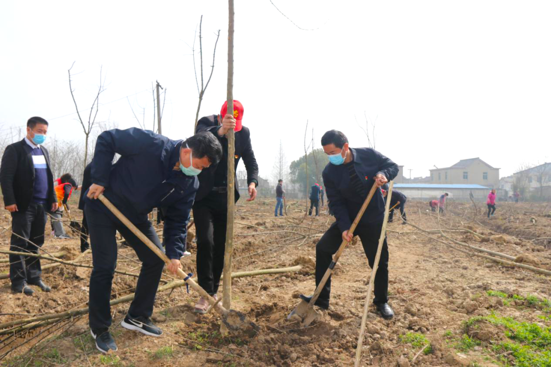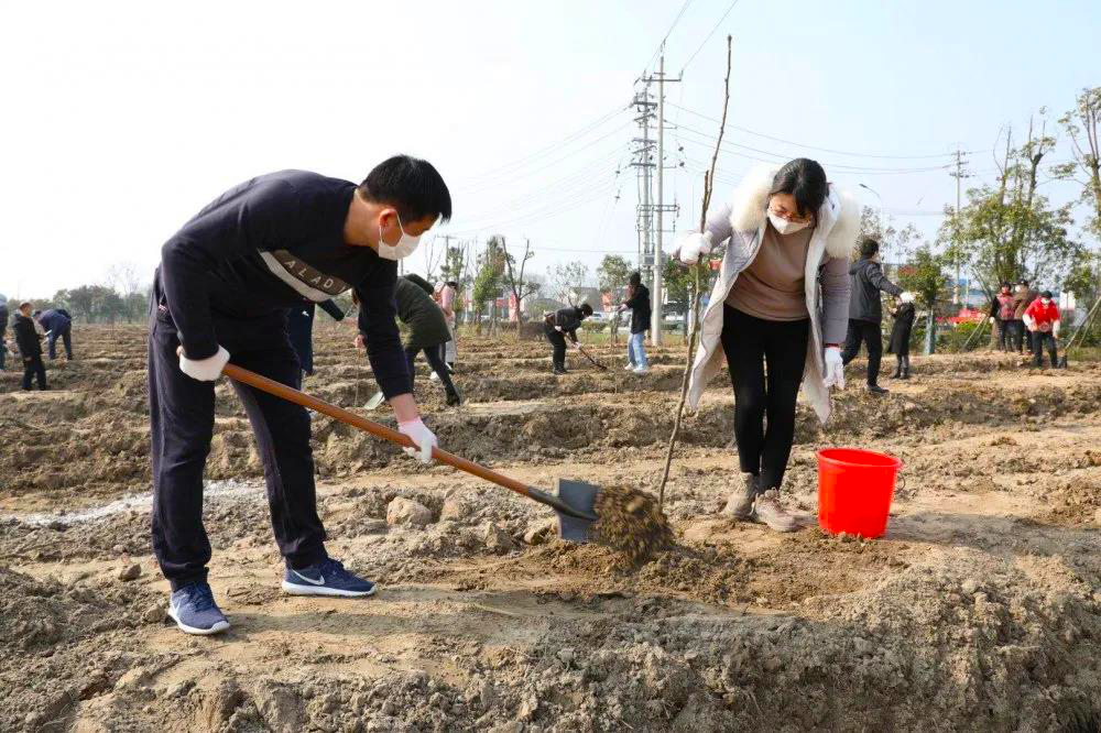 新集镇组织机关干部、党员志愿者50余人在凌东村开展义务植树活动,共栽下500余株三角枫树苗,给新集大地增添无限生机。