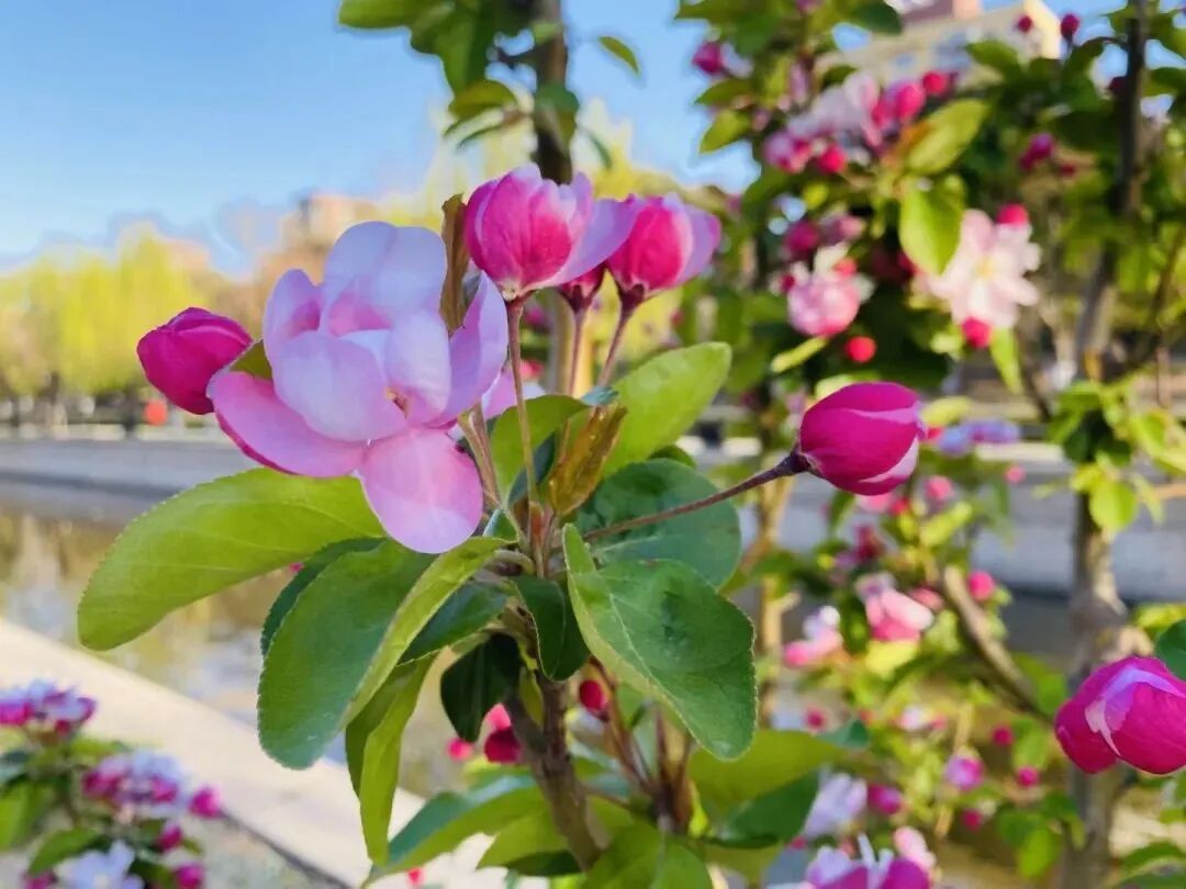 西府海棠,为木兰纲、蔷薇科、苹果属的植物,小乔木,高达2.5-5米,树枝直立性强,为中国的特有植物。西府海棠在北方干燥地带生长良好,是绿化工程中较受欢迎的产品。