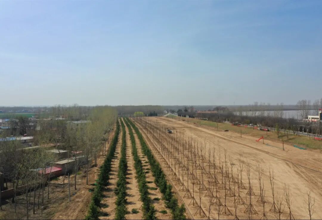 开封黄河生态廊道示范带项目位于黄河大堤南侧,长13.5km、宽110m,西起城乡一体化示范区水稻乡黑岗口K76+100处,东至柳园口乡黄河大堤K90+300处,规划范围涉及城乡一体化示范区、龙亭区,总规划面积1.5平方公里,是开封市极具标志性的文化带和重要的生态走廊,也是开封市文化、休闲、旅游设施的重要补充。当前,棕榈股份通过设计施工一体化,结合开封实际,以“谋求黄河的高质量发展,让黄河成为造福人民的幸福河”为规划目标,抢抓绿化的黄金时间,助力八朝古都开封加快建设沿黄生态廊道、促进黄河流域生态保护。