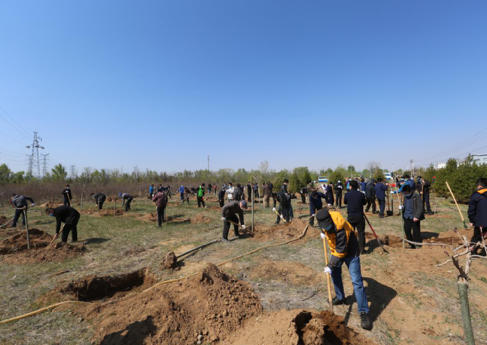 一行人在做好防疫检查之后,大家两人三人一组,扶正树苗、挖土填坑、提桶浇水。每道工序都做得十分认真,切实做到人人肩上有担子,个个身上有任务,经过一上午的劳动,300余株红叶杨树苗稳稳地扎根在湿润的土壤里,为初春的林场大地增添了新的颜色。植树活动结束后,八达岭林场为参加植树尽责的人员颁发了首都全民义务植树尽责证书,也使这次义务植树造林活动达到了高潮。