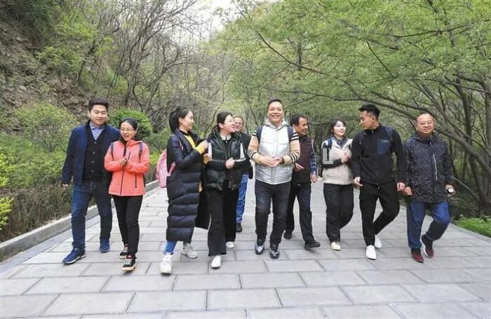 4月20日,游客葛伟等在牛背梁国家森林公园内游览 记者 安涛摄