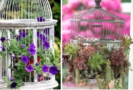 鸟笼里开出的牵牛花,或者种一些多肉,都很特别呢!