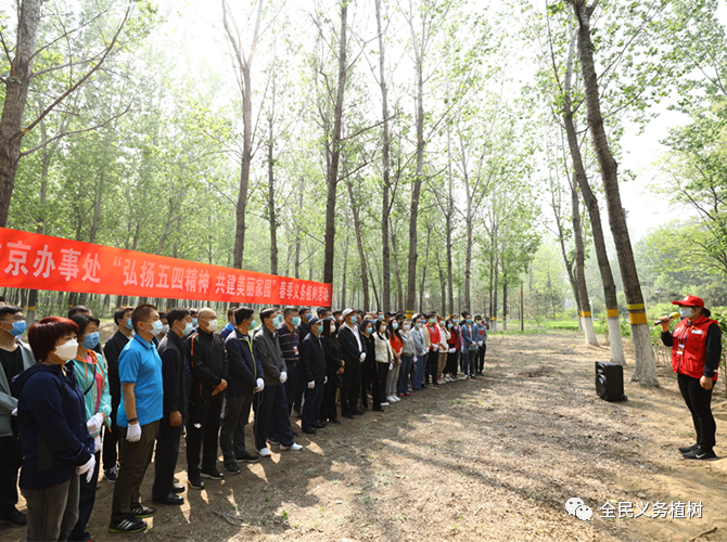 4月30日上午,国管局驻京办事处与综合管理司党委书记王金波带领司党委委员和各驻京办事处党团干部一行62人来到北京市共青林场,开展以“弘扬五四精神 共建美丽家园”为主题的义务植树活动。首都绿化委员会办公室义务植树处处长刘丽莉、四级调研员杨振威和北京绿化基金会理事长杨树田也参加了本次活动。