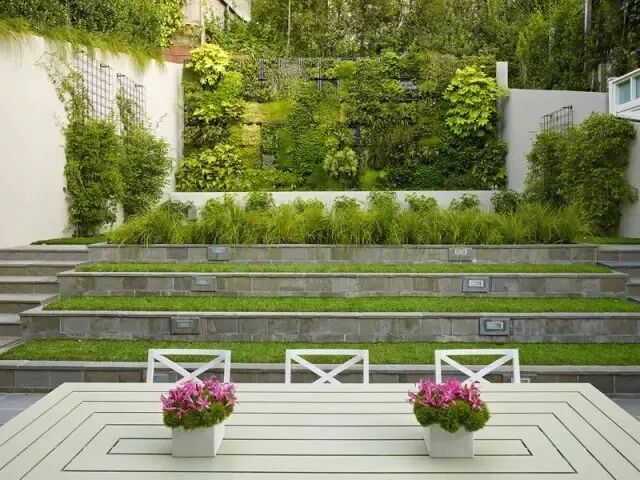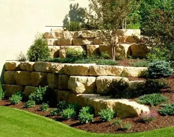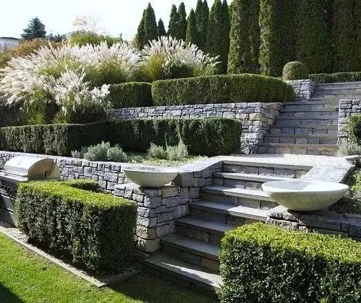 用混凝土或石头砌筑挡土墙,规整好台地,再种上错落有致生机盎然的绿植,院子就能收获一片漂亮的绿景。