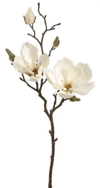 花蕾卵圆形,花先叶开放,直立,芳香,直径10-16厘米;花梗显著膨大,密被淡黄色长绢毛;花被片9片,白色,基部常带粉红色,近相似,长圆状倒卵形,长6-8(10)厘米,宽2.5-4.5(6.5)厘米;雄蕊长7-12毫米,花药长6-7毫米,侧向开裂;药隔宽约5毫米,顶端伸出成短尖头;雌蕊群淡绿色,无毛,圆柱形,长2-2.5厘米;雌蕊狭卵形,长3-4毫米,具长4毫米的锥尖花柱。