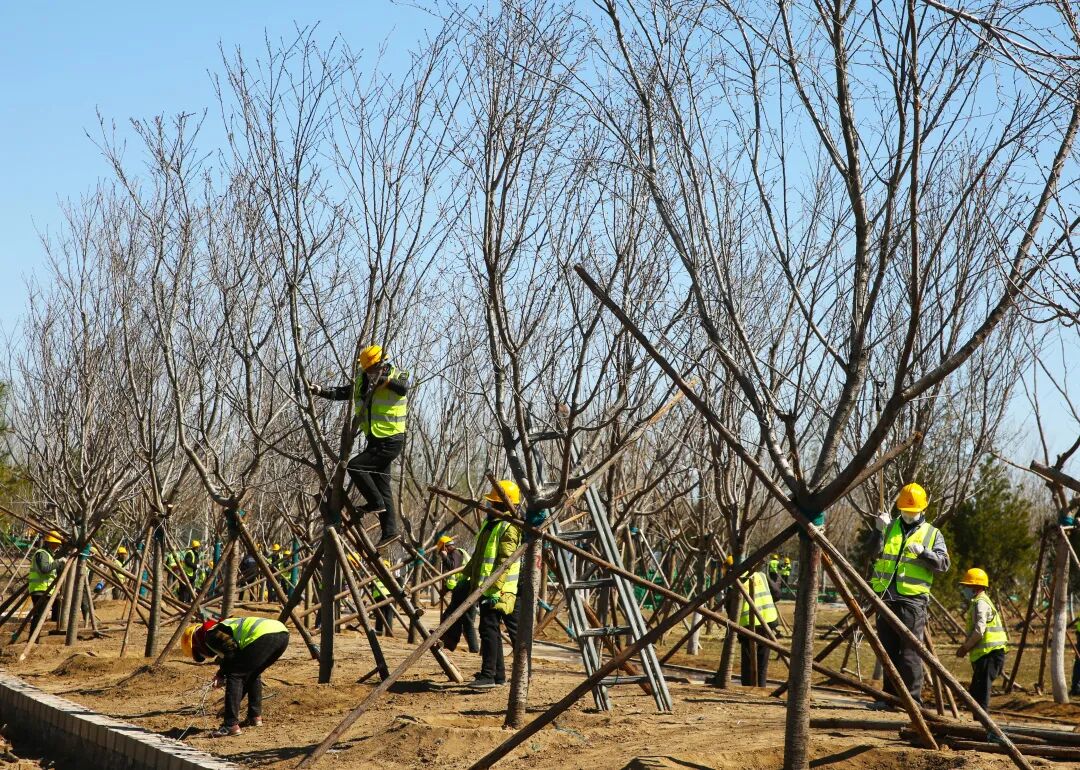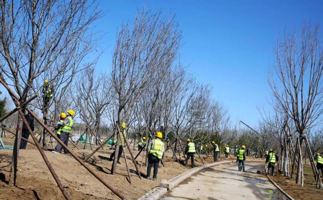 初春的北京春意盎然、生机勃勃,但比起春意更暖的是城建园林建设者们忙碌的身影。一年之计在于春,春天是植物生长的好季节,是促进绿化苗木栽植和返青养护的绝佳时机。日前,“城市绿心”的“樱花庭院”景观项目周边,近500余名城建园林人正牢牢抓住春耕有利时节,夜以继日抓紧施工,为“城市绿心”涂抹最美春色。
