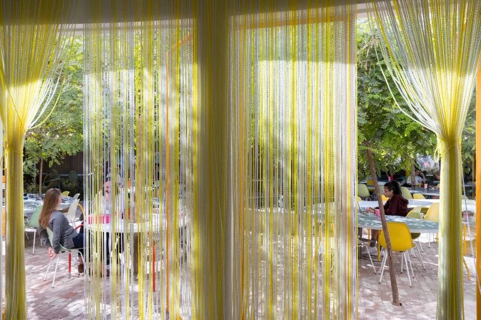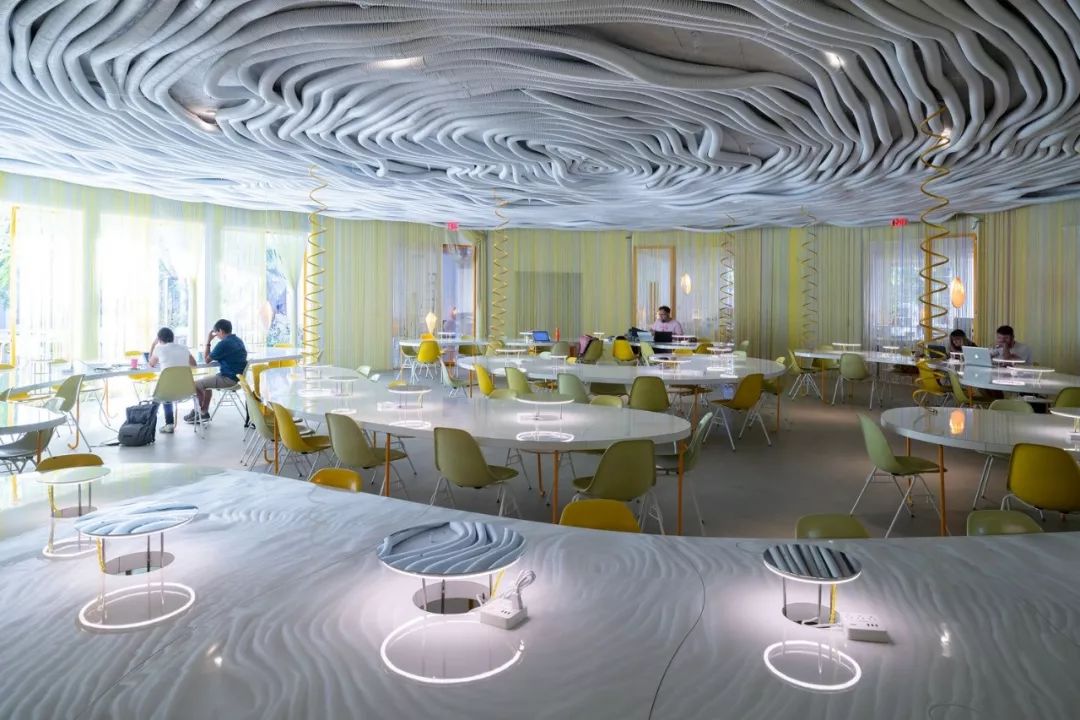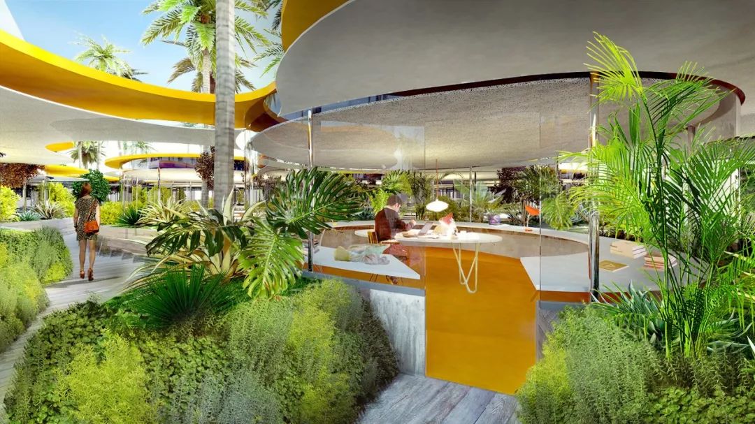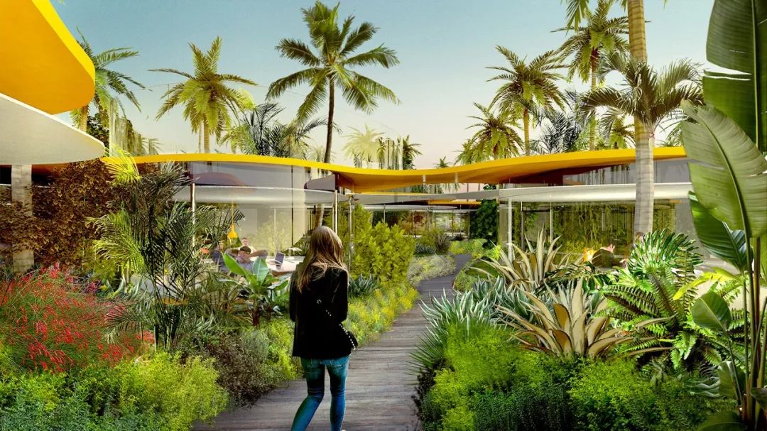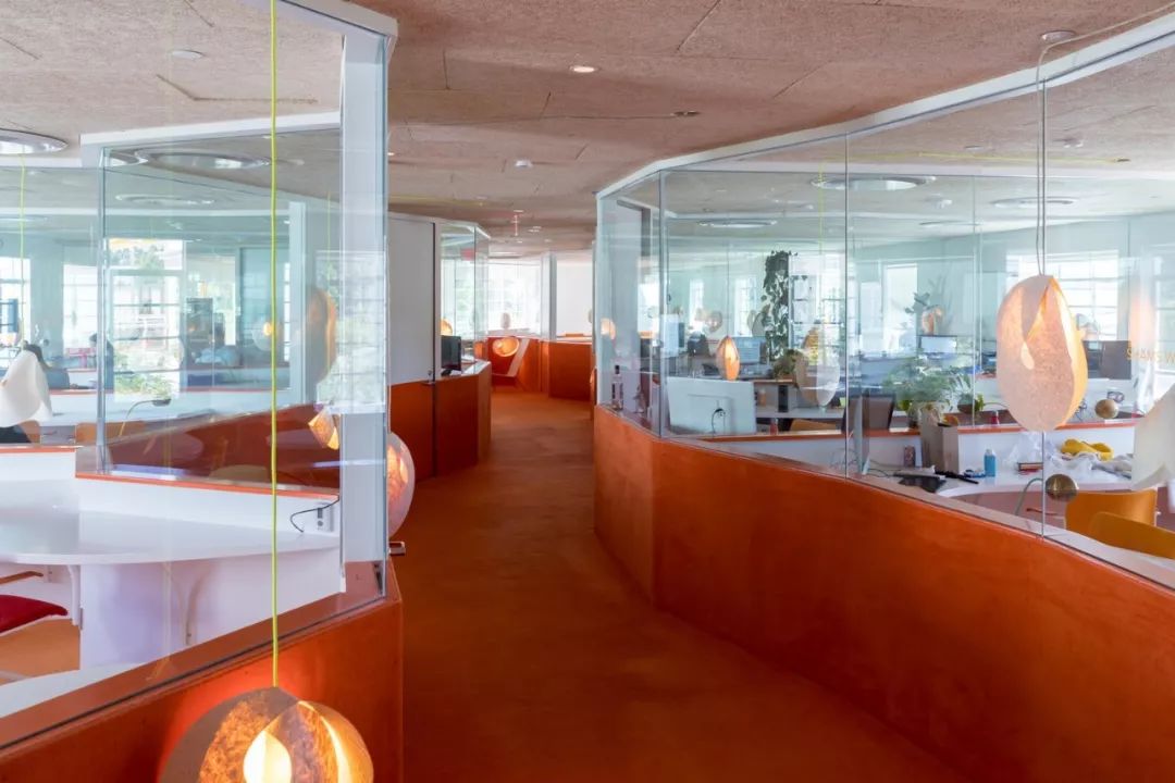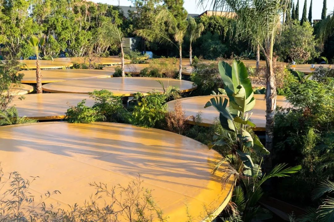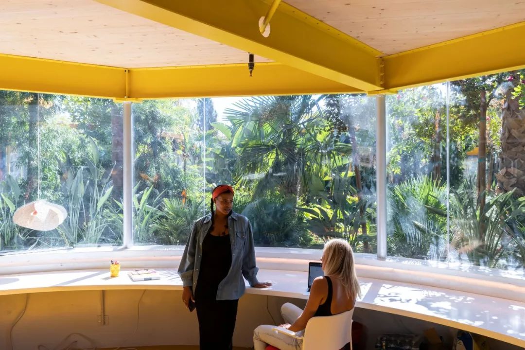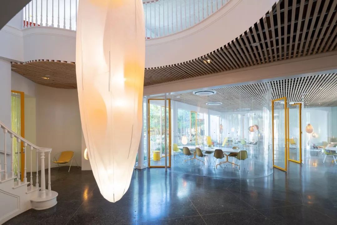 多数办公室为提升办公舒适度,通常会放大量绿植。如果直接把办公室建在绿化之中,会是一种什么样的感受?该项目最大的亮点将位于地下车库上方的建筑拆除改造为一个巨大的花园空间,围绕散布60个四种不同形状尺寸的椭圆形独立办公空间和会议室,可容纳700名工作人员。Second Home好莱坞办公室被视为是一次办公空间设计实验,借此探讨人们与动植物和谐共处的空间模式。椭圆形独立建筑被“嵌入”1.2高的花坛中,相当于与桌面齐平的高度。这样一来,员工在室内可以360度欣赏到花园内的植物,营造出在大自然中办公的氛围。60个独立办公室就像是聚集在花园里的花盆,其中环绕超过1万多种花草树木,并让蝴蝶、蚂蚁、蜜蜂、松鼠与人们共同置身于花园。设计极尽自由开放,全透明空间设计以及鲜亮色彩让空间充满动感与激情。贯穿花园的路径由木材和混凝土构成,两侧种满了全年生花卉,以营造一种充满生机活力的自然之感。