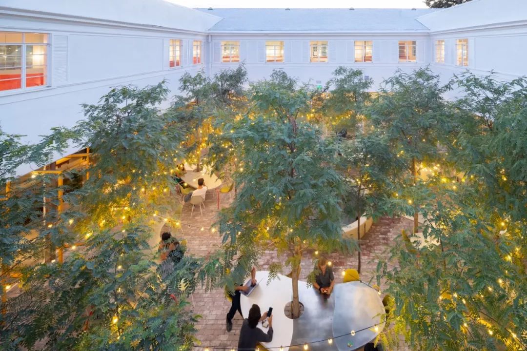 建筑各处分布咖啡厅、酒吧、餐厅、活动会议大厅、休息区域和露天平台等一系列公共空间。除此之外,两个共14万升的蓄水池能够收集场地中的水源,用于园区日常用水。相比高楼把地起式的办公建筑,这样的设计思路真让人眼前一亮!