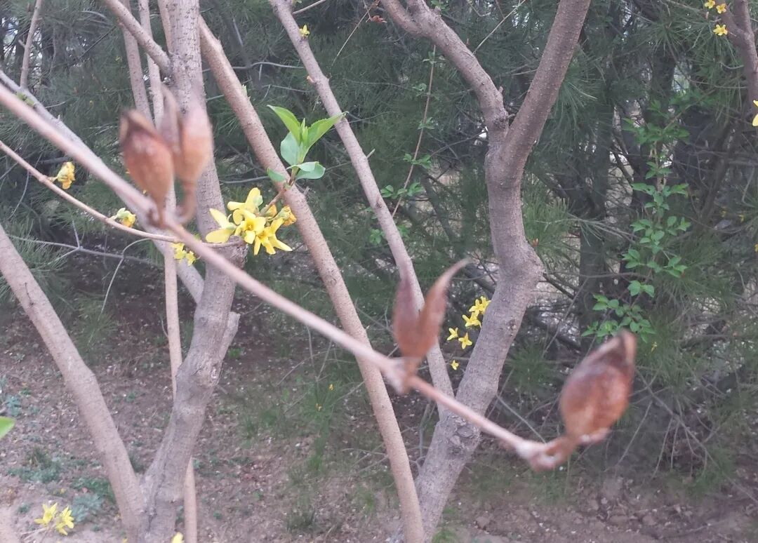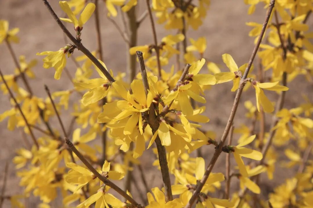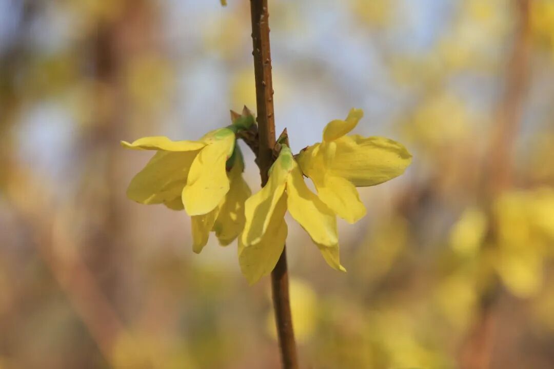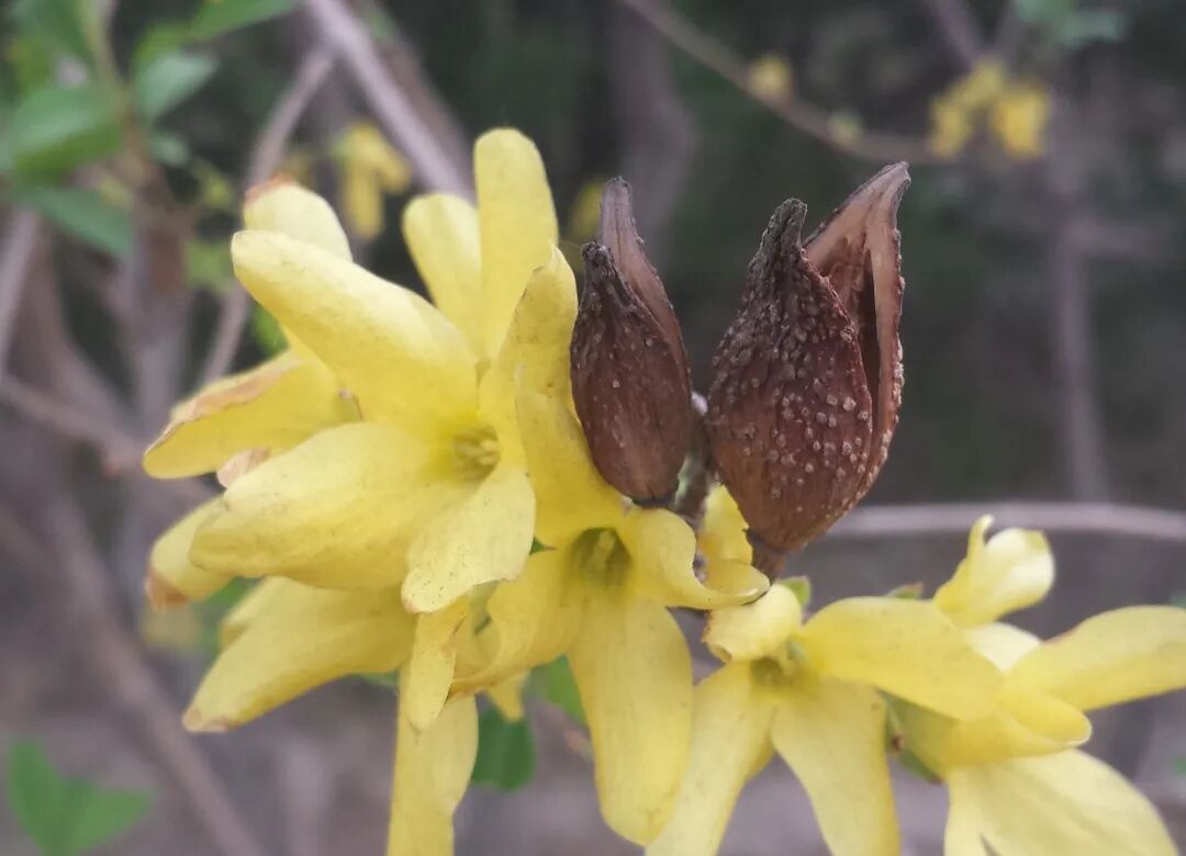 连翘也会反常开花。在百花凋零的秋季、初冬反季开花,成为一道独特的景观,是典型的花开二度。连翘二度开花一般出现在秋季。有时也会在初冬,但是比较少见。