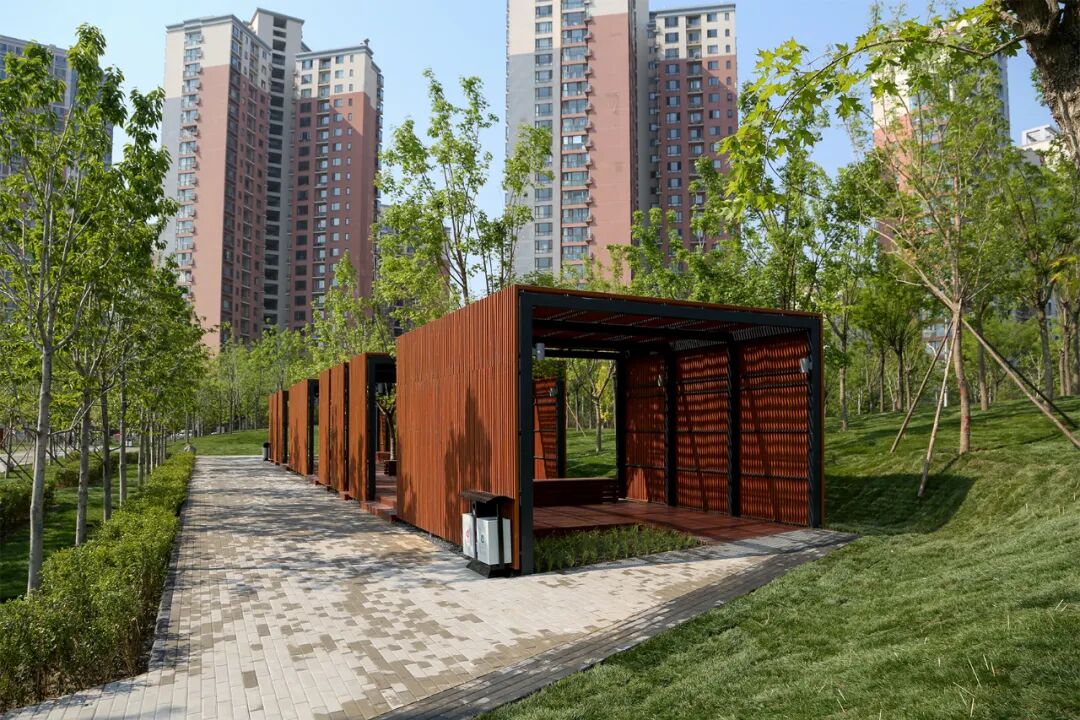 据朝阳区太阳宫乡党委副书记陈鹏介绍,坝河常庆花园位于朝阳区坝河、太阳宫北街和比如世界购物中心三角地带,总面积5.17公顷。公园正处于一道绿隔城市公园环上,去年7月腾退后,在一片建筑荒地上经过大半年的绿化施工,建成了以“坝河文化”为特色,满足周边市民健身游憩的城市休闲公园。