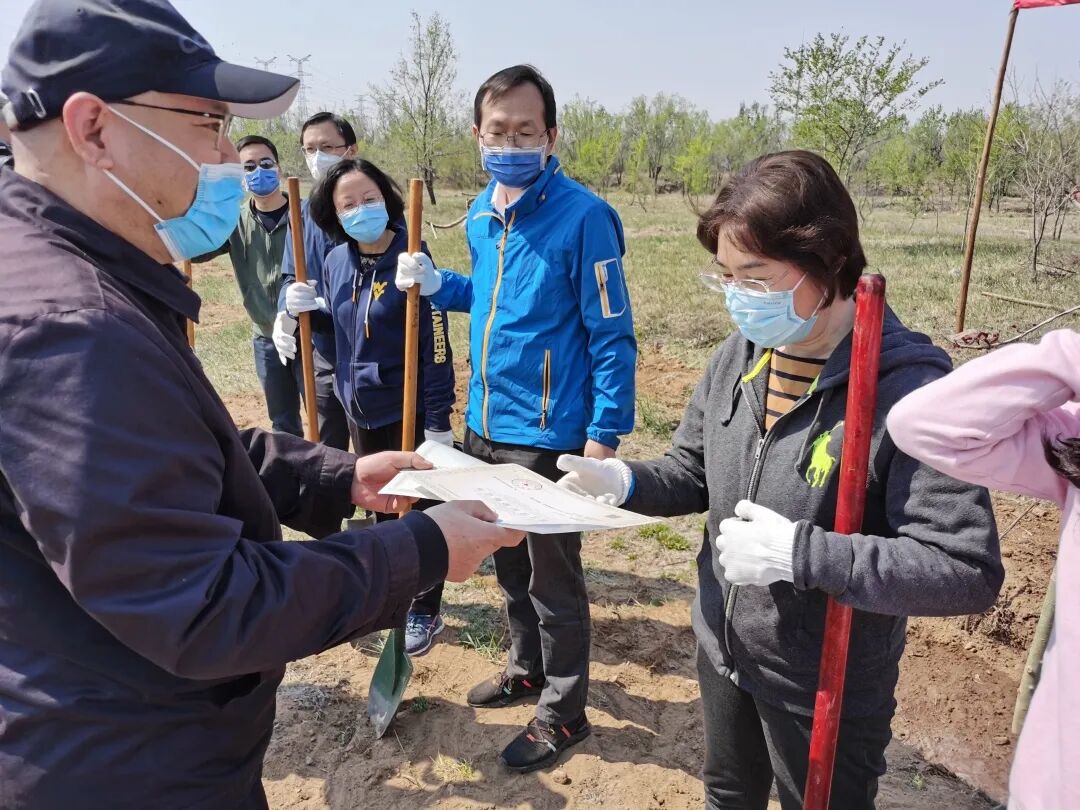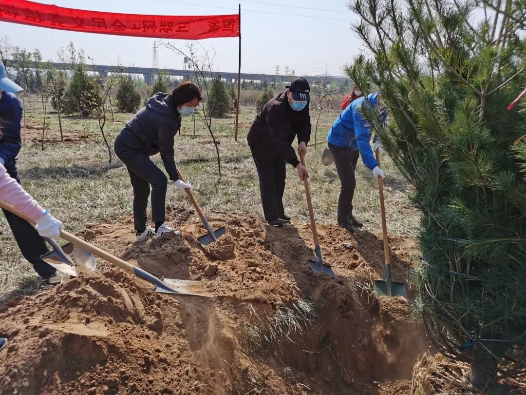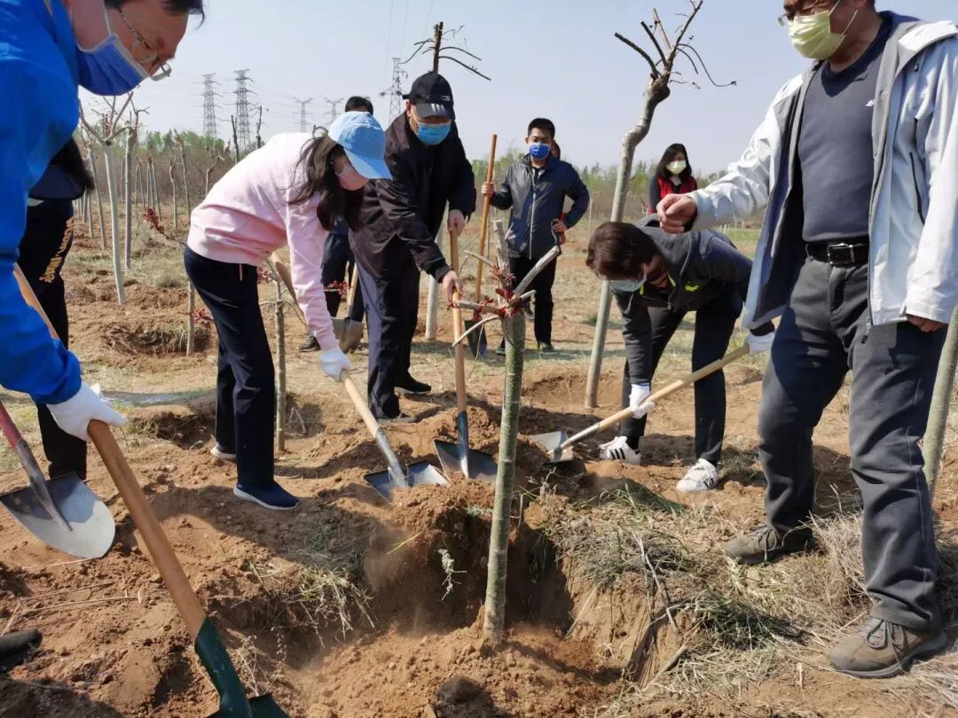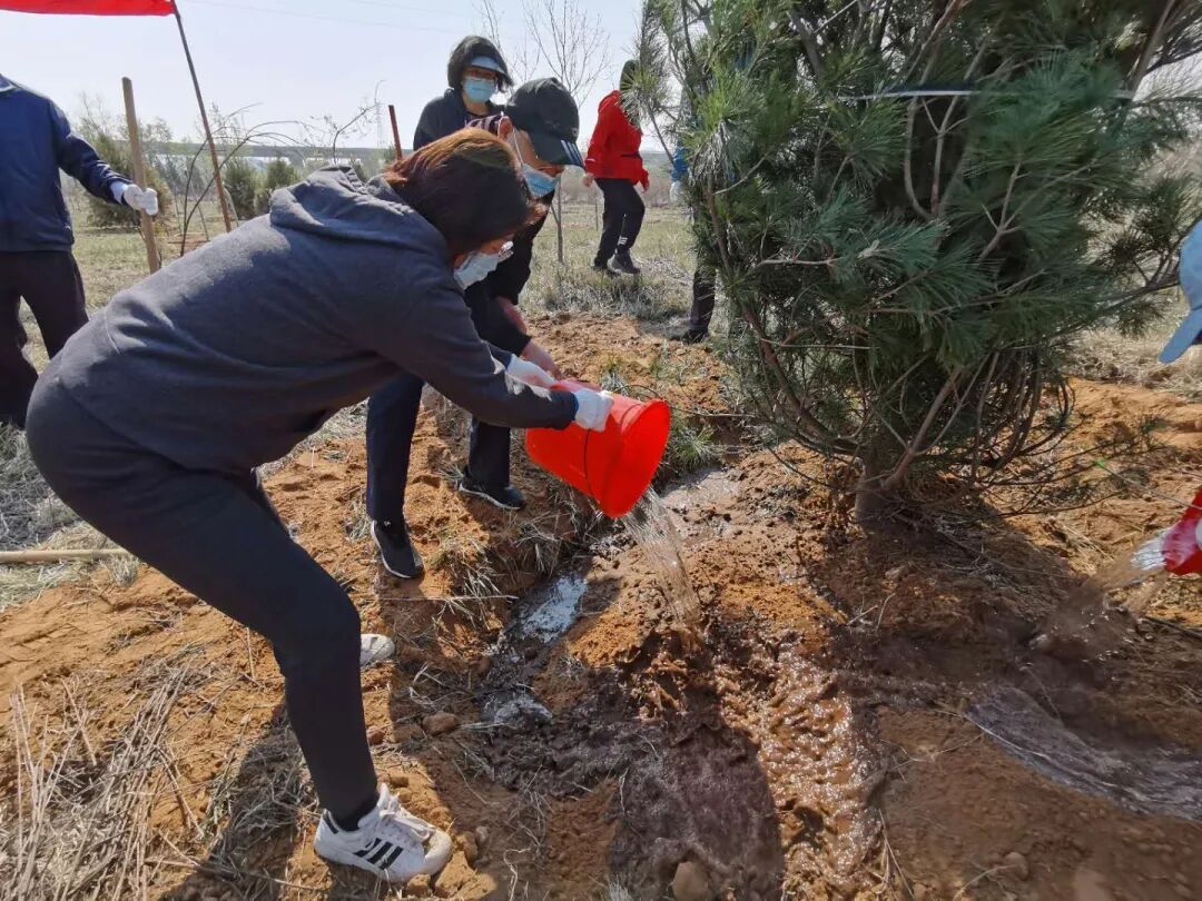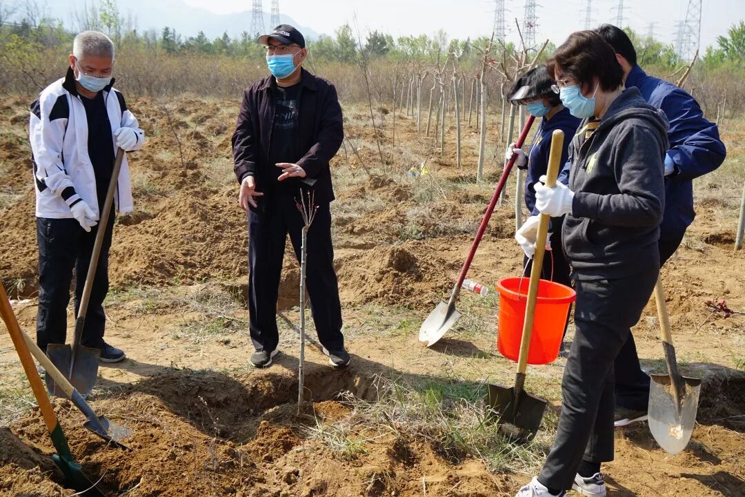 一行人在防疫检查之后,便立即投入植树活动中。铲土培实、提桶浇水,每道工序,一丝不苟。并很专业的运用起“三埋两踩一提苗”的栽植裸根树苗的技巧。经过大家的辛勤劳动,栽下了6株可以守望千年的白皮松,也种下了6株堪称世界一绝的红叶杨,不仅为首都绿化事业增了绿,也加了炫彩夺目的红。