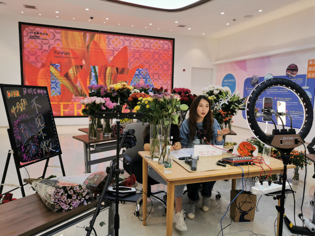在活动现场,云南本地的抖音达人“丽江石榴哥”“云南小花”也与鲜花商家“花哥”“花之梓”等数十家首批入驻直播示范小镇的花商,用各色绚丽多彩的鲜花,将现场点缀得五彩缤纷,美女帅哥通过“云上”直播,向全国受众展示、推介、销售云花。花企同时开启抖音直播,呈贡区委书记、区长等领导走进直播间进行带货直播体验。