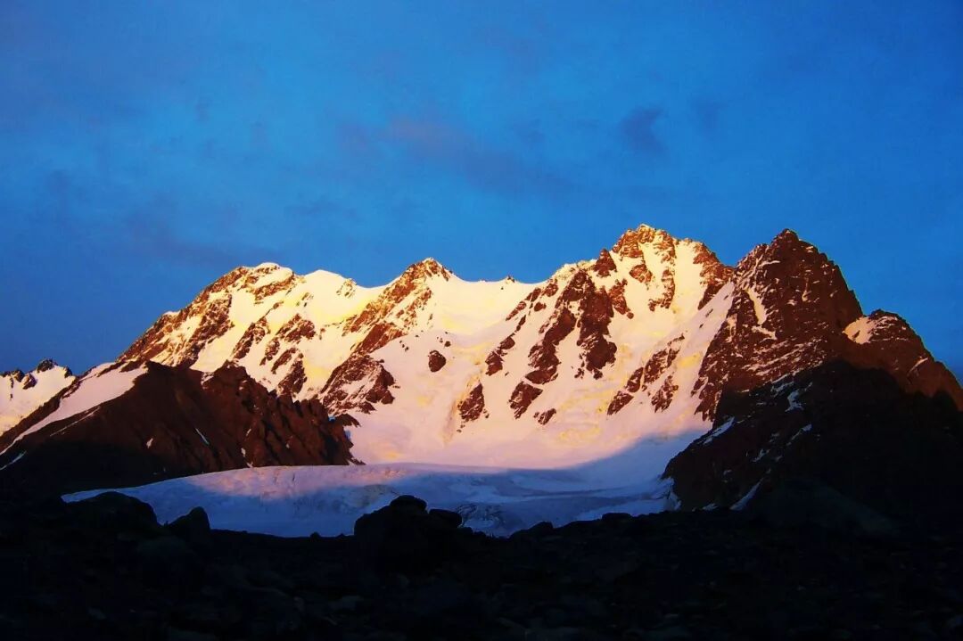 博格达山脉最高峰海拔5445米,坐落在阜康市境内,距离乌鲁木齐市80余公里,是天山山脉东段著名高峰。博格达峰山体陡峭,西坡与南坡坡度达70—80度,只有东北坡坡度稍缓。在主峰的东西方向,分别排列着7座5000米以上的高峰。