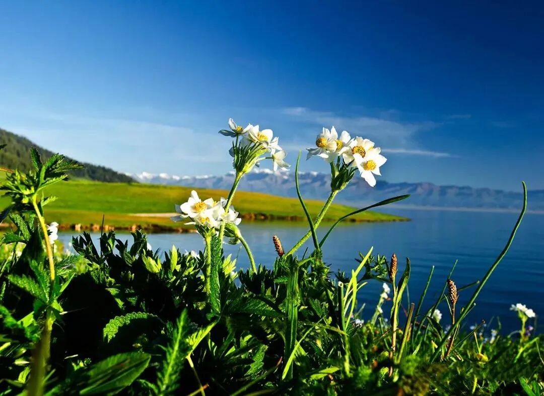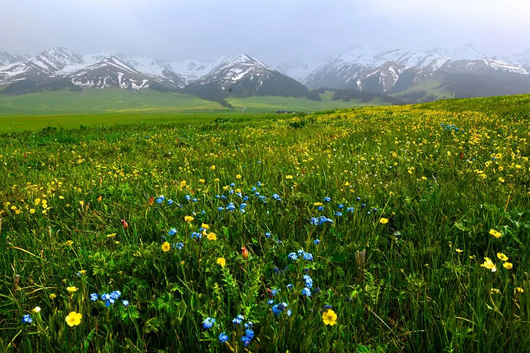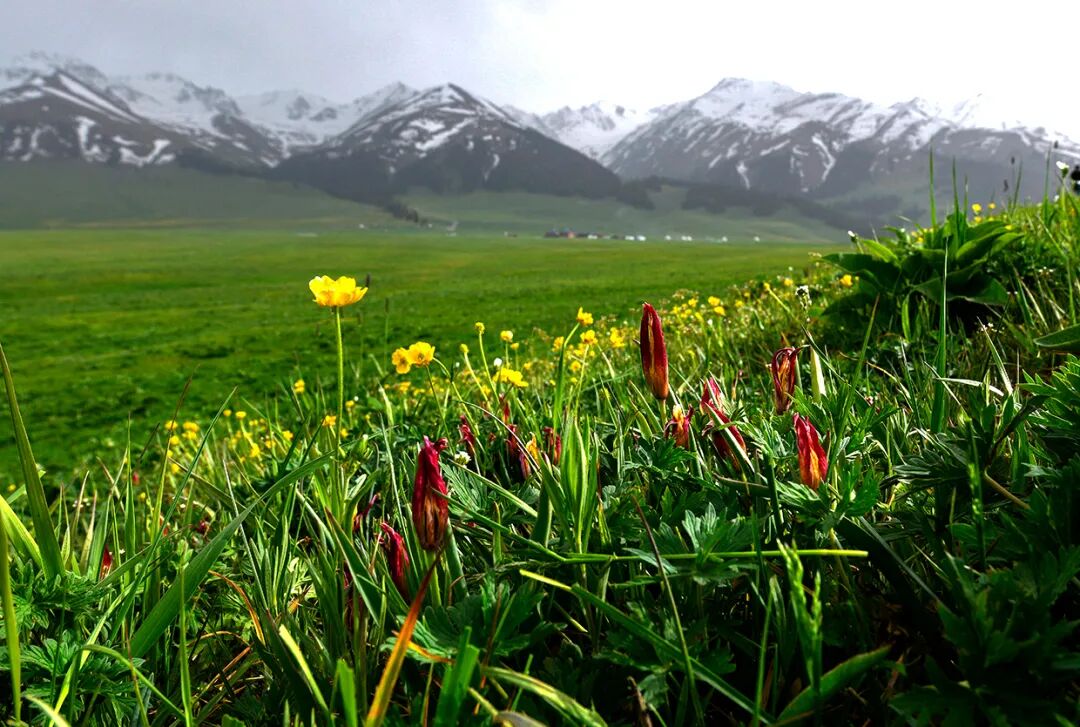 雪山初融,草原新绿,山花烂漫