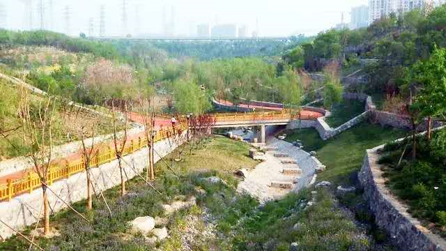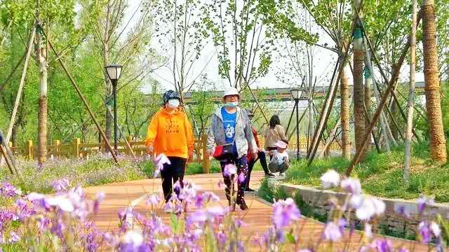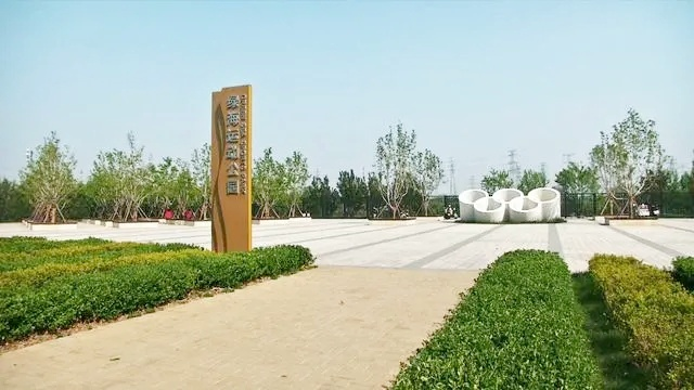绿海运动公园位于新城大街东侧,总面积达53.36公顷,其中绿化面积为44.06公顷。园内种植了槐树、榆树、二月兰等各种树木和花卉,总量达到5.2万株,形成了立体的植被生态体系,市民身在园内能感受到被“绿色”环抱的舒爽。