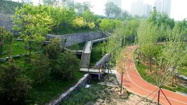 在休闲运动方面,公园设有塑胶跑道和仿木质步道,使绿色与运动相结合,拉近人与自然的距离。