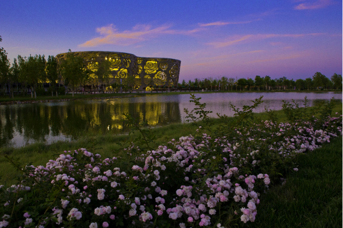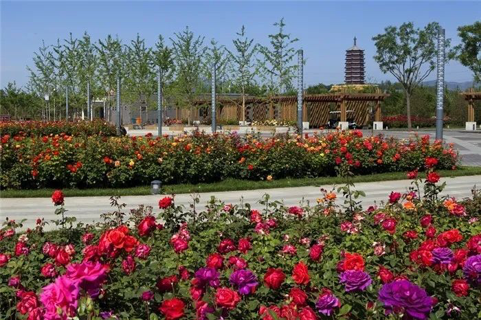 北京园博园园区内月季花园占地面积约3.6公顷,有光谱、睡美人、黑玫、自由之中、飘云、金凤凰等90余个品种4万余株。在保护原有月季品种品质的基础上,新栽植了5000余株绿野月季、大紫光月季、曼海姆等名贵品种,花色艳丽、结构丰满,丰富了园内月季资源,提升了景观效果。
