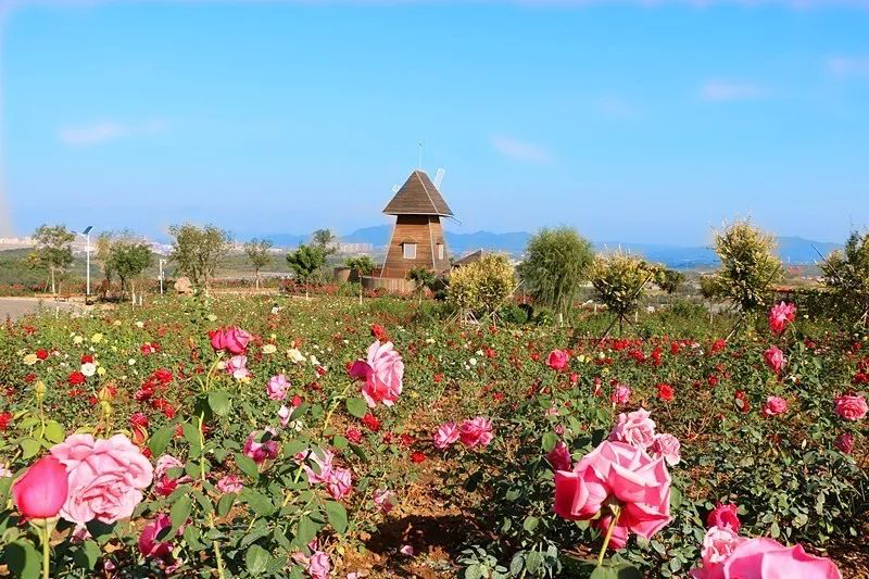 蔡家洼玫瑰情园园区内的月季竞相绽放,不仅缤纷艳丽,且个头十足,每朵都有碗口大小。而且种类繁多如北京红、甜蜜的梦、醉红颜、红珊瑚、火焰山等百余个品种,包含了红、黄、粉、白、紫、橙色及复色等七个色系。除此之外,游客还可观赏到其自主研发的具有自主知识产权的月季花卉。