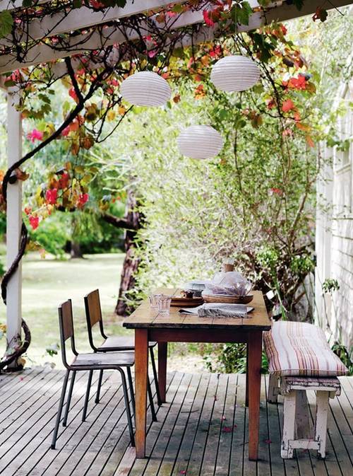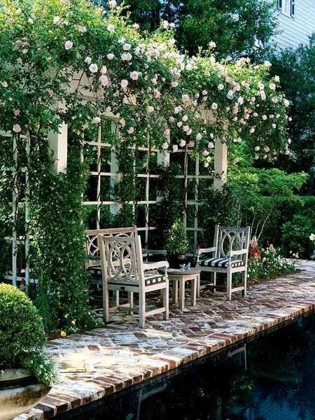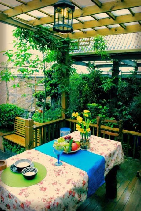 如果可以 在院子里不妨摆张桌子 放几把舒适的椅子 等到朋友来的时候 你们可以在花架下聊天,喝茶 尽情感受花草的芬芳和美丽