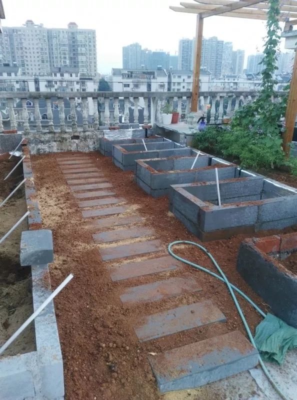 再用膨胀水泥砖铺设走道,隔离种植功能区。