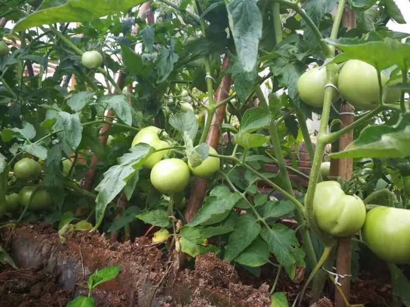 西红柿挂满了枝头,沉甸甸的直不起身来,