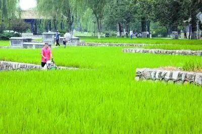 戏楼再往东是一片稻田。这个季节稻子绿油油的,已经抽穗了。历史上,玉泉山地区就是京西稻的主产区,虽然已经搬迁上楼,老把式们看见稻子还是眼睛放光,舍不得挪开。