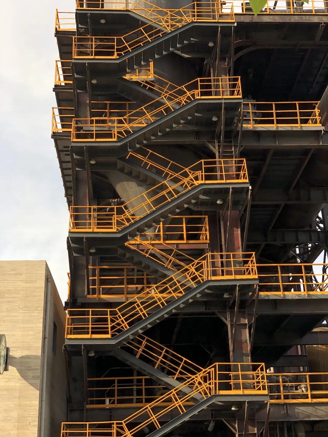 沿路再向北走,一座雄伟的高炉在远处就能看到它壮丽的身影。三号炉是首钢最大的炼铁炉,炉高70余米,有效容积有2500立米,是百年首钢炼铁史上的功勋高炉,高炉及其附属设备高大恢宏给人以强大的视觉冲击,它在秀池中形成的倒影与实体相连,形成如海市蜃楼般的美景。曾经吞云吐雾的巨型机器重获新生,化身为历史与景观而继续存在。