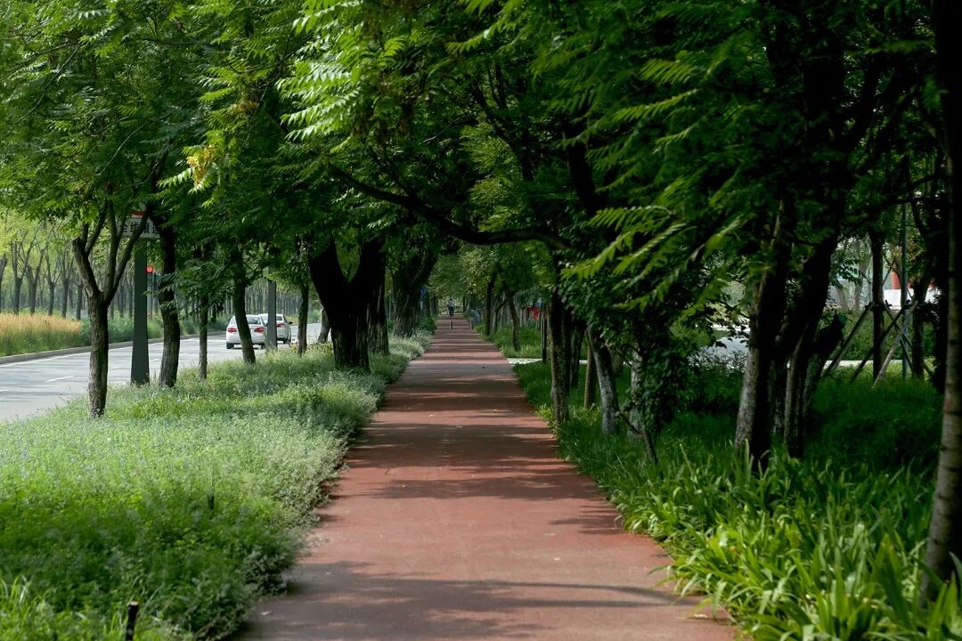 进入首钢园,道路两旁的花圃中种满了桔梗、荆芥、葎草、八宝、紫薇等各种花朵,花香、草香沁人心脾,但又不至过于浓烈。