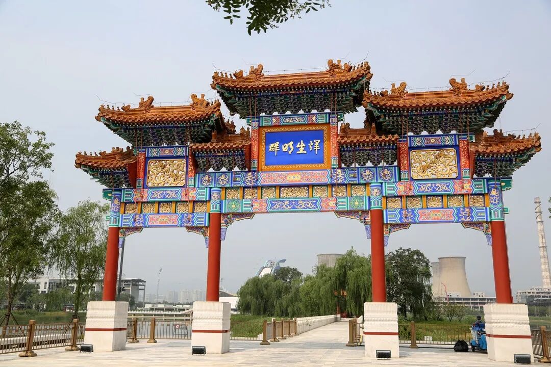 沿群明湖大街漫步行走,在道路西面,一座气派的仿古牌坊映入眼帘,上书四个大字:群明生辉。古香古色的牌坊,配合上一汪清澈碧绿的群明湖水,顿时让人身心放松。